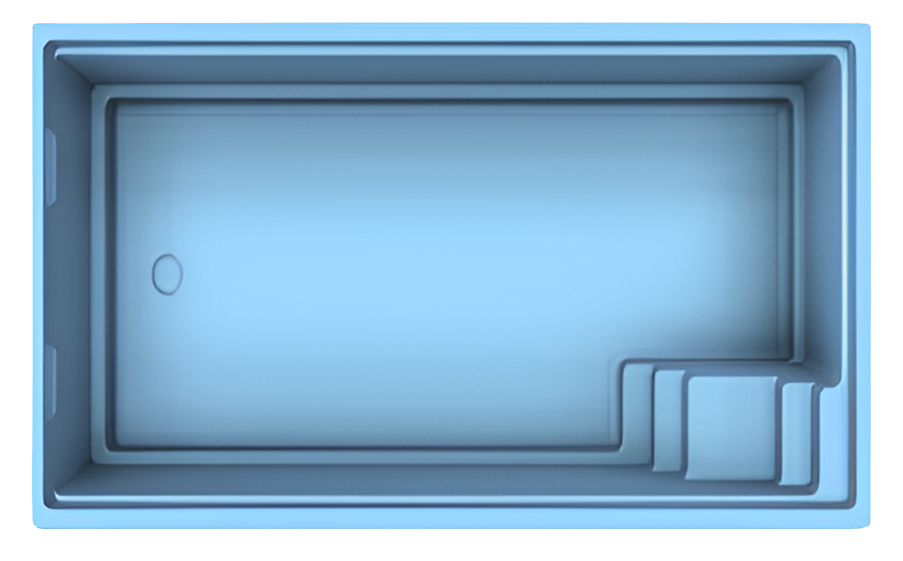 • Beckenform: Rechteckiges Becken mit Treppenreihe und Sitzbank in der linken Ecke.