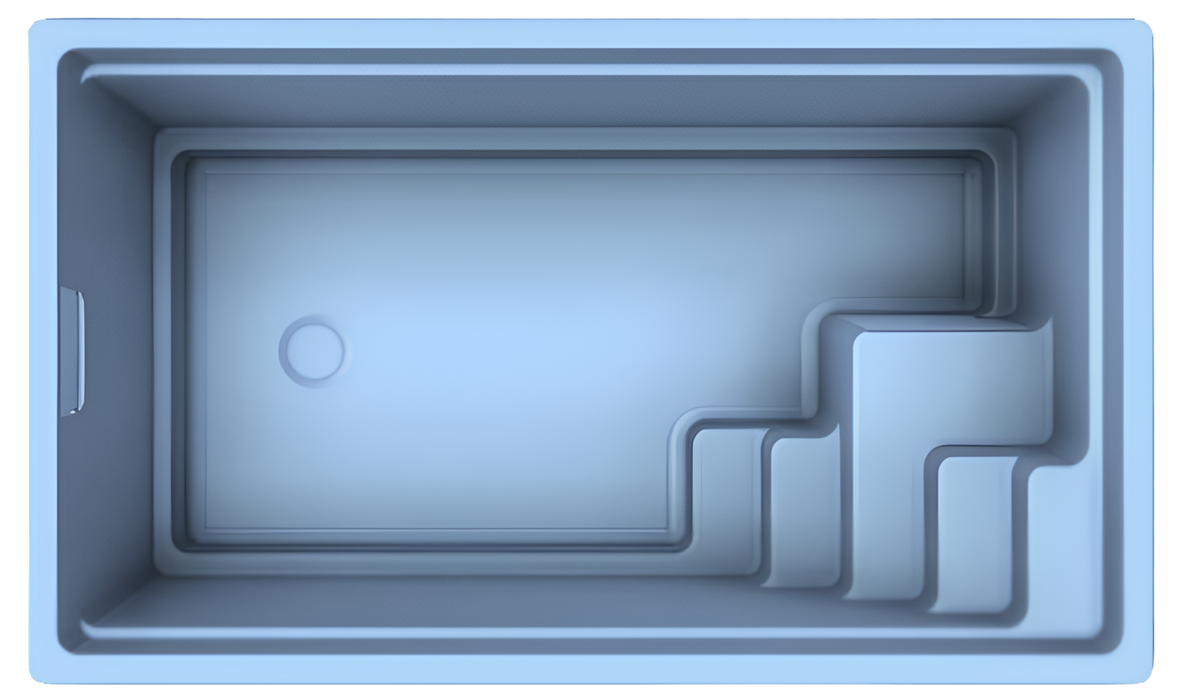 • Kompaktes, rechteckiges Becken mit einer Treppenreihe in der linken Ecke und