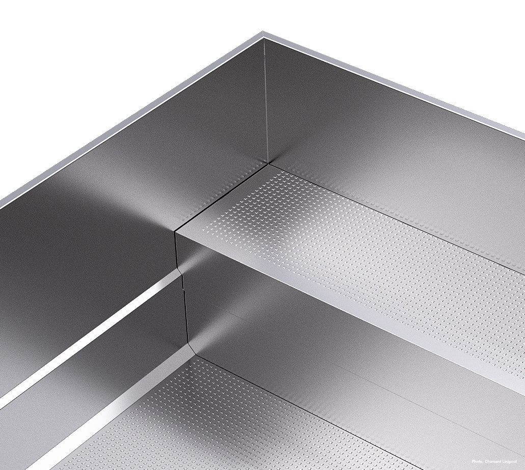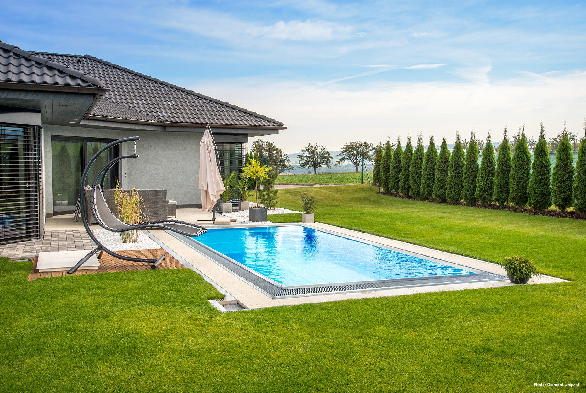 Das Becken wird auf ein Betonfundament gestellt. Die Seitenwände werden mit einer trockenen oder halbtrockenen Betonmischung hinterfüllt. Optional kann auch Thermobeton verwendet werden.